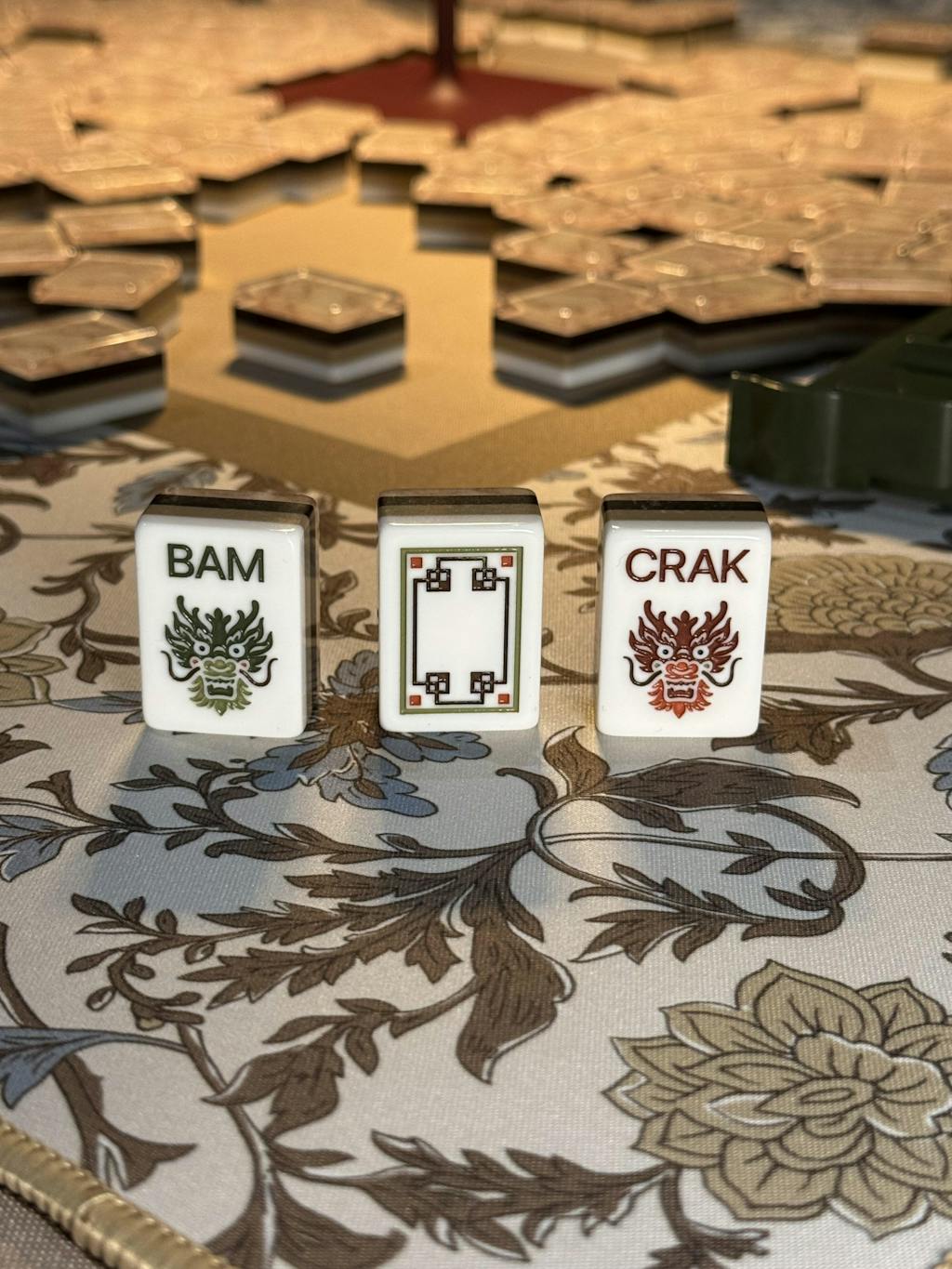 Radiating warmth and sophistication, the Ash Burl Mahjong Tile Set draws inspiration from the intricate beauty of burled wood. Its swirling pale tones and deep espresso accents echo the richness of natural grain patterns — each layer revealing depth, movement, and luxury.